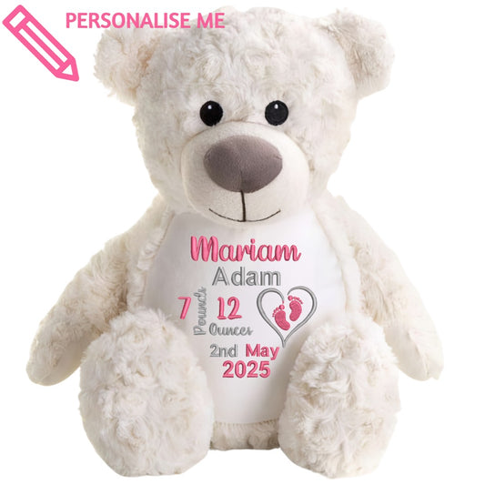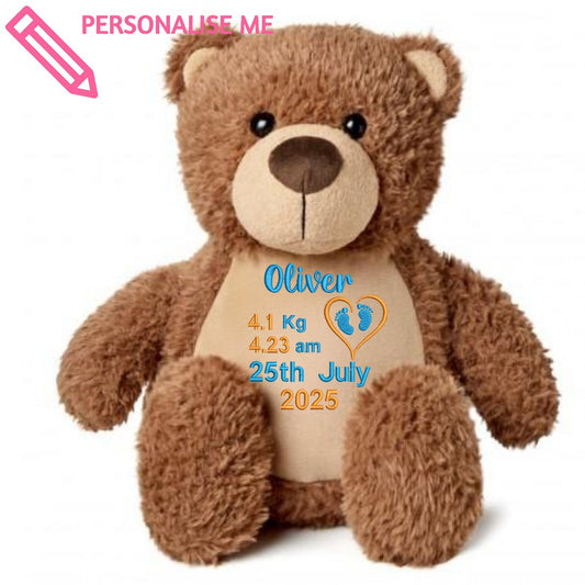 Welcome your little bundle of joy with the Embroidered Birth Teddy Bear, a cuddly friend...