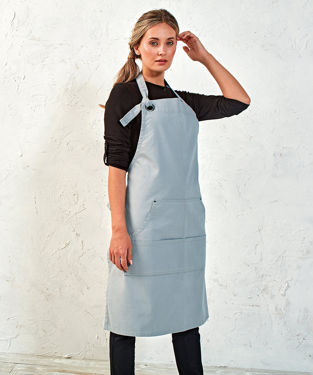 This full bib style sees a kangaroo style pocket stitched into four handy compartments. Finished with rivets for styling and a gun metal eyelet for facilitating the neckband, this apron offers a touch of luxury with the heavy cotton canvas fabric giving a soft, yet tough feel. Its hardwearing design makes it suitable for use in a variety of settings, from restaurants and bars to industrial kitchens and outdoor events. Add a personal touch with the option for custom embroidery.