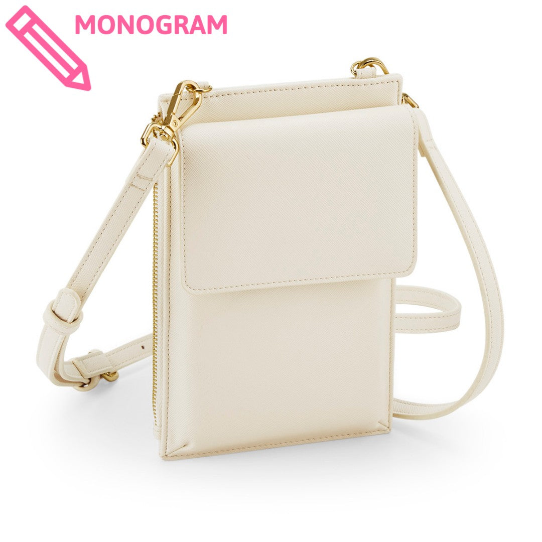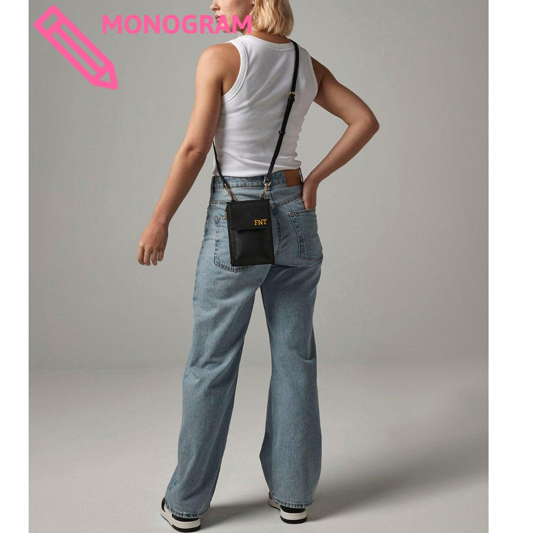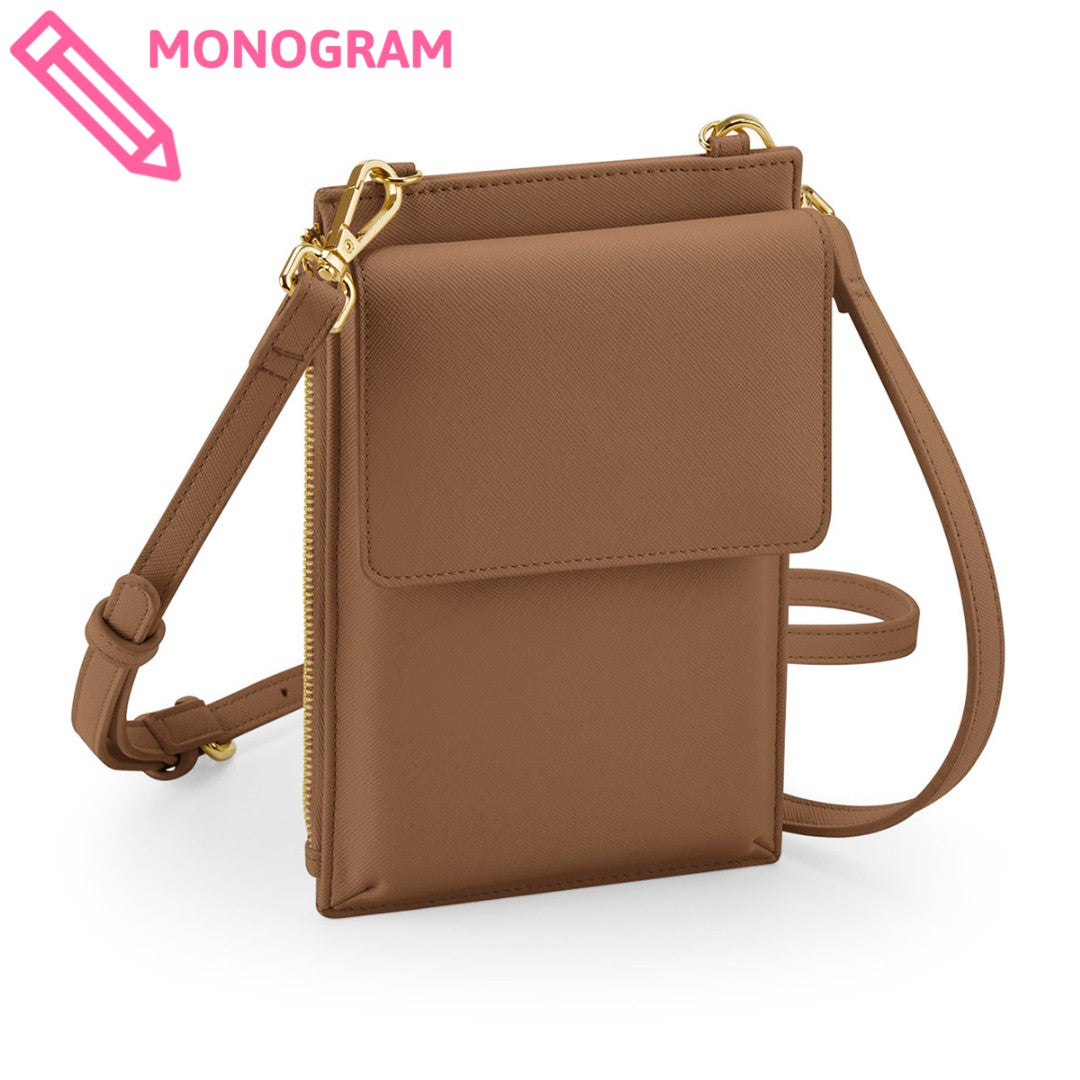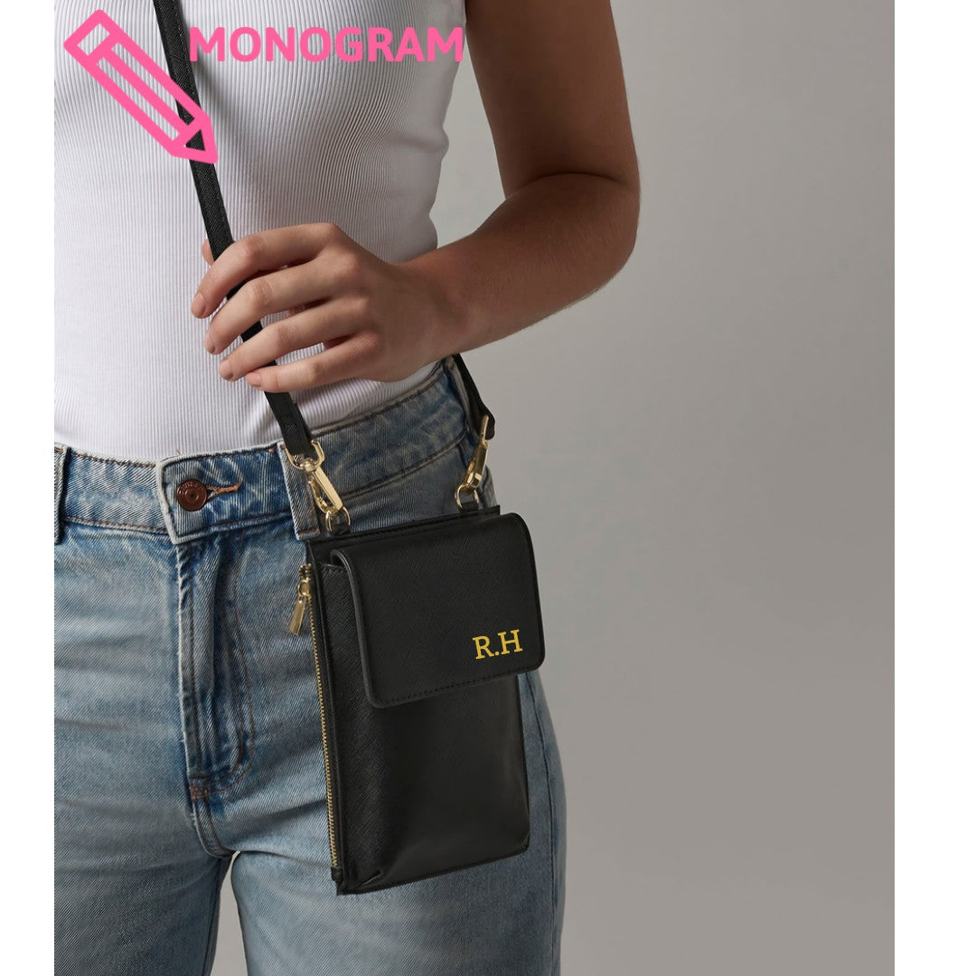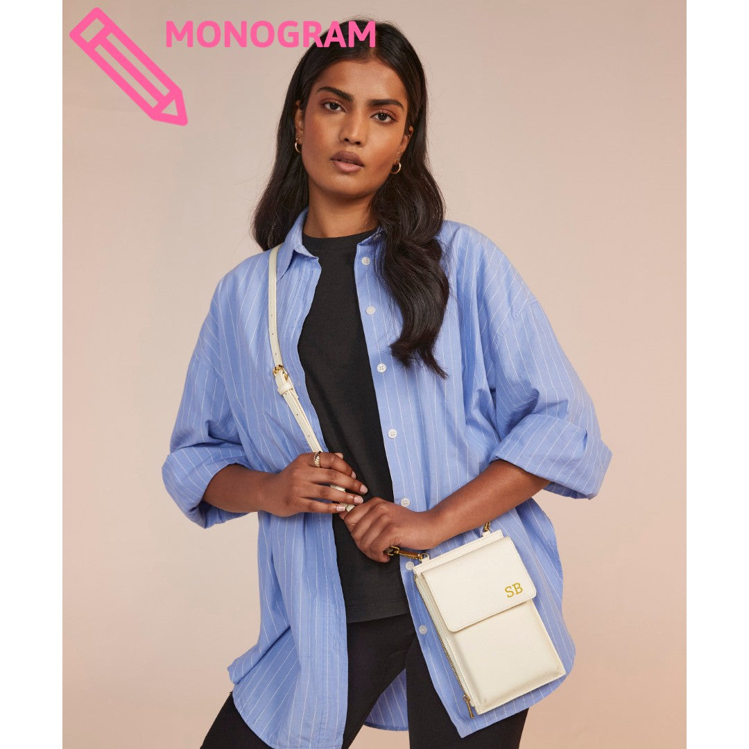 Equip yourself for a day out with the Bansky phone carry case, featuring a convertible strap for shoulder or cross-body wear. Secure your phone in the button-clasped pocket, safeguarded by a plush layer of cushioning, and stow any small trinkets in the zippered rear storage. Make it yours with the unique personalisation options. monogram