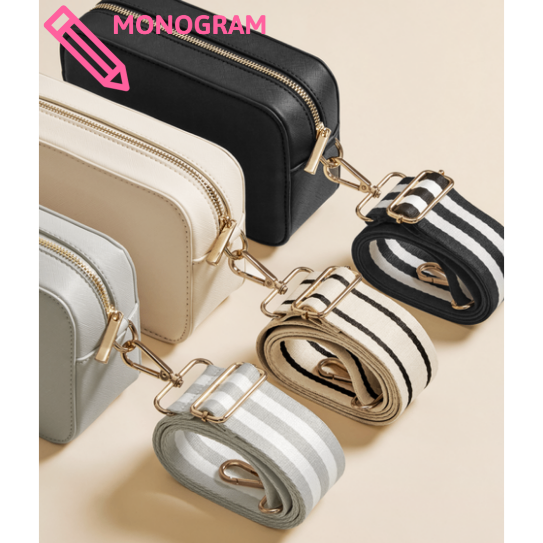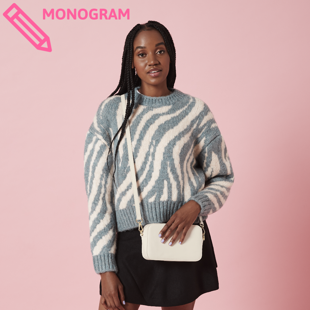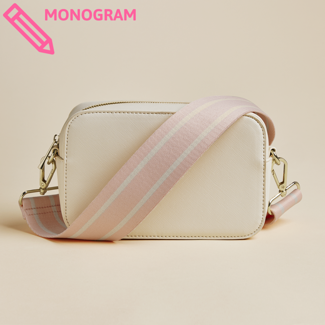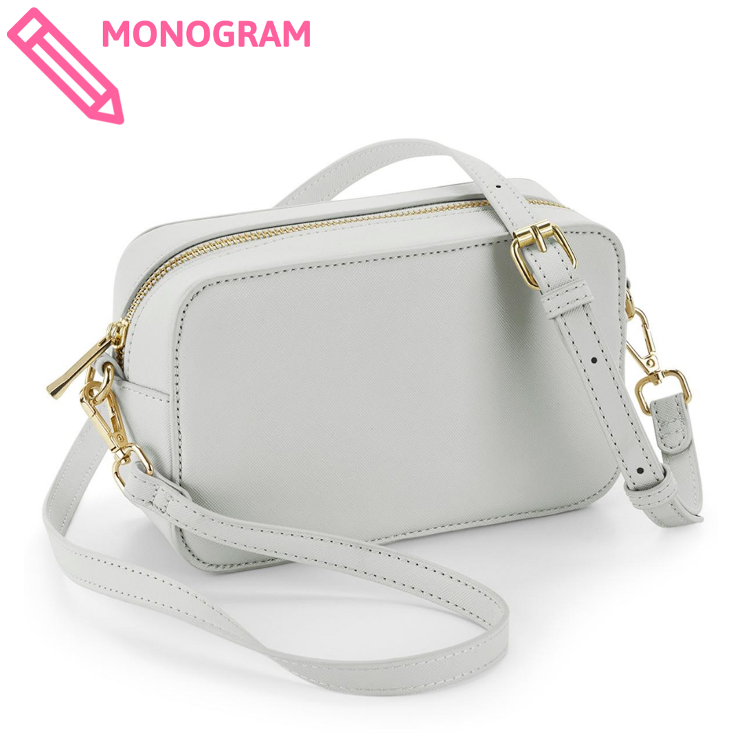 Add a personal touch to the Bansky Cross Body Bag with a custom monogram. Crafted from saffiano fine-grain leather-look material, it boasts a sophisticated, luxurious finish complemented by a soft-touch lining and gleaming gold zippers. Its structured, boxy shape works effortlessly for both casual and evening wear, making it an essential versatile piece. Plus, the interchangeable Bansky Adjustable Bag Strap allows you to easily coordinate it with any outfit.