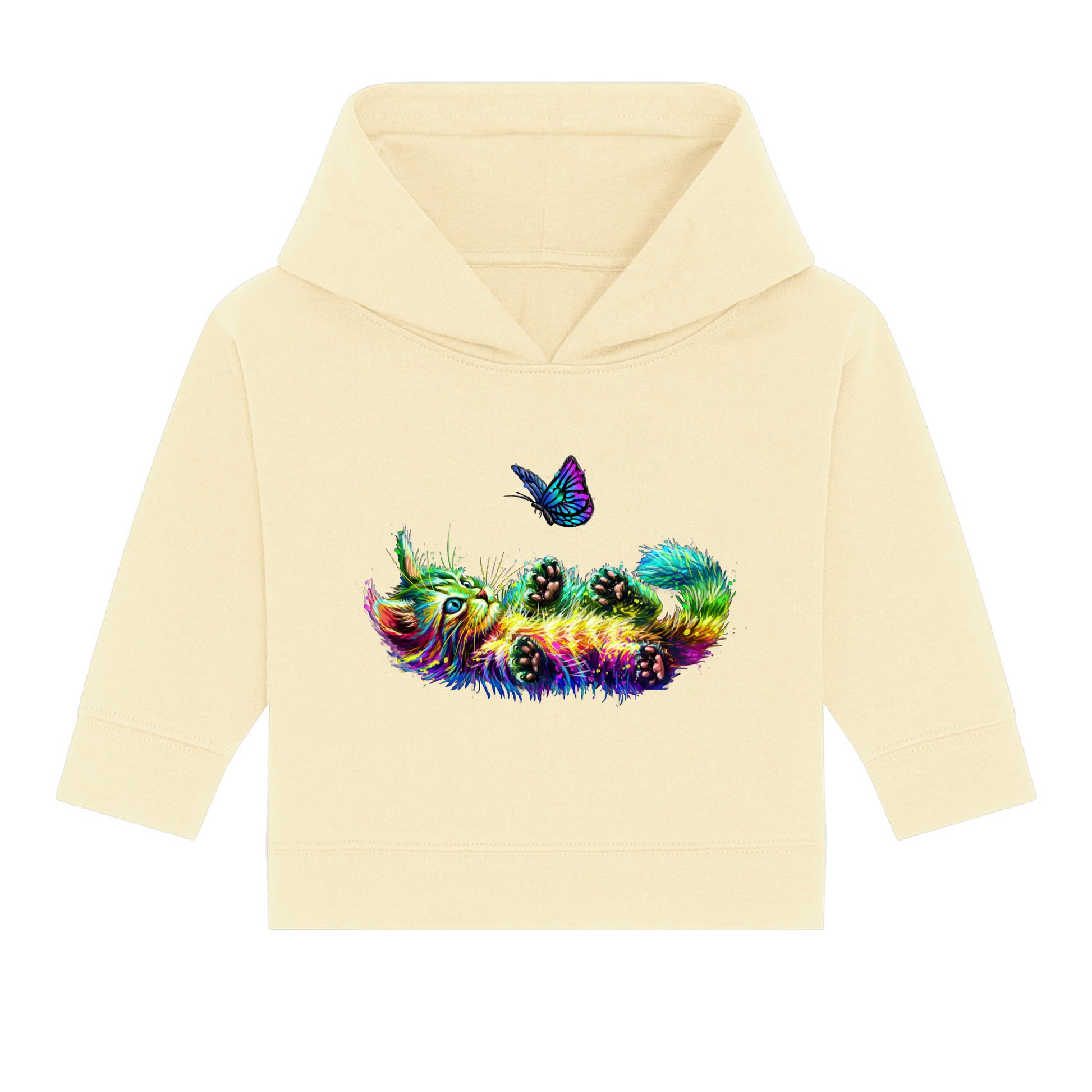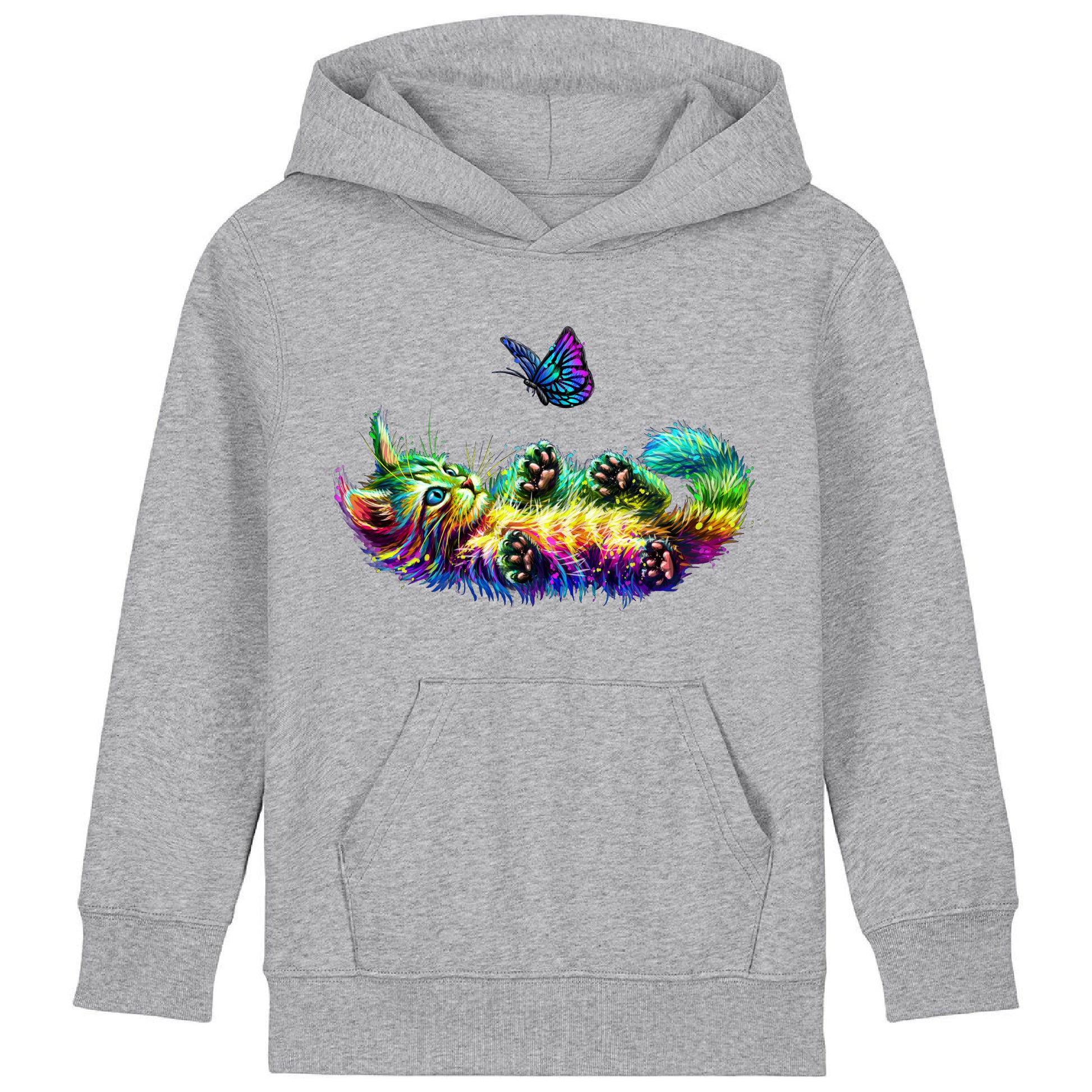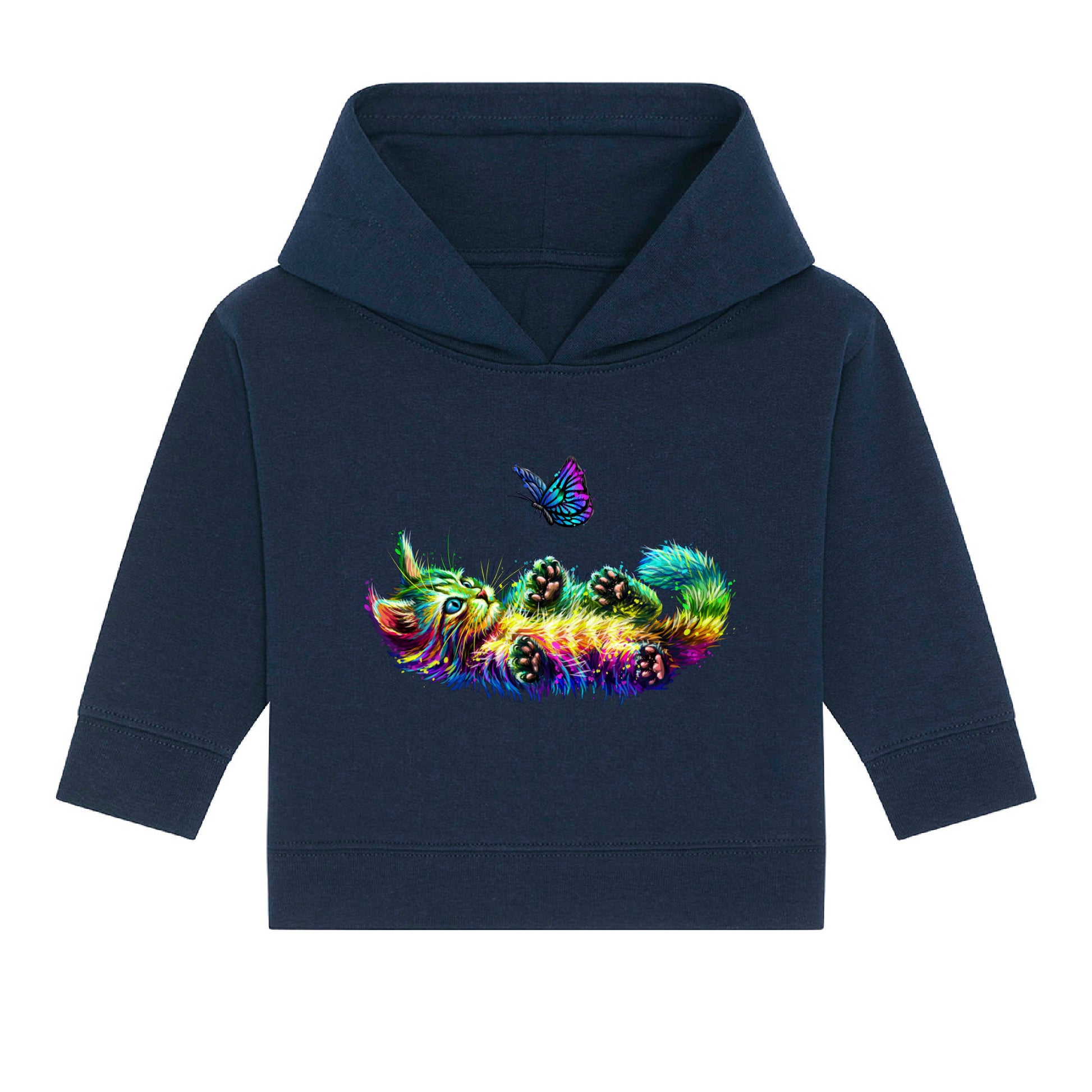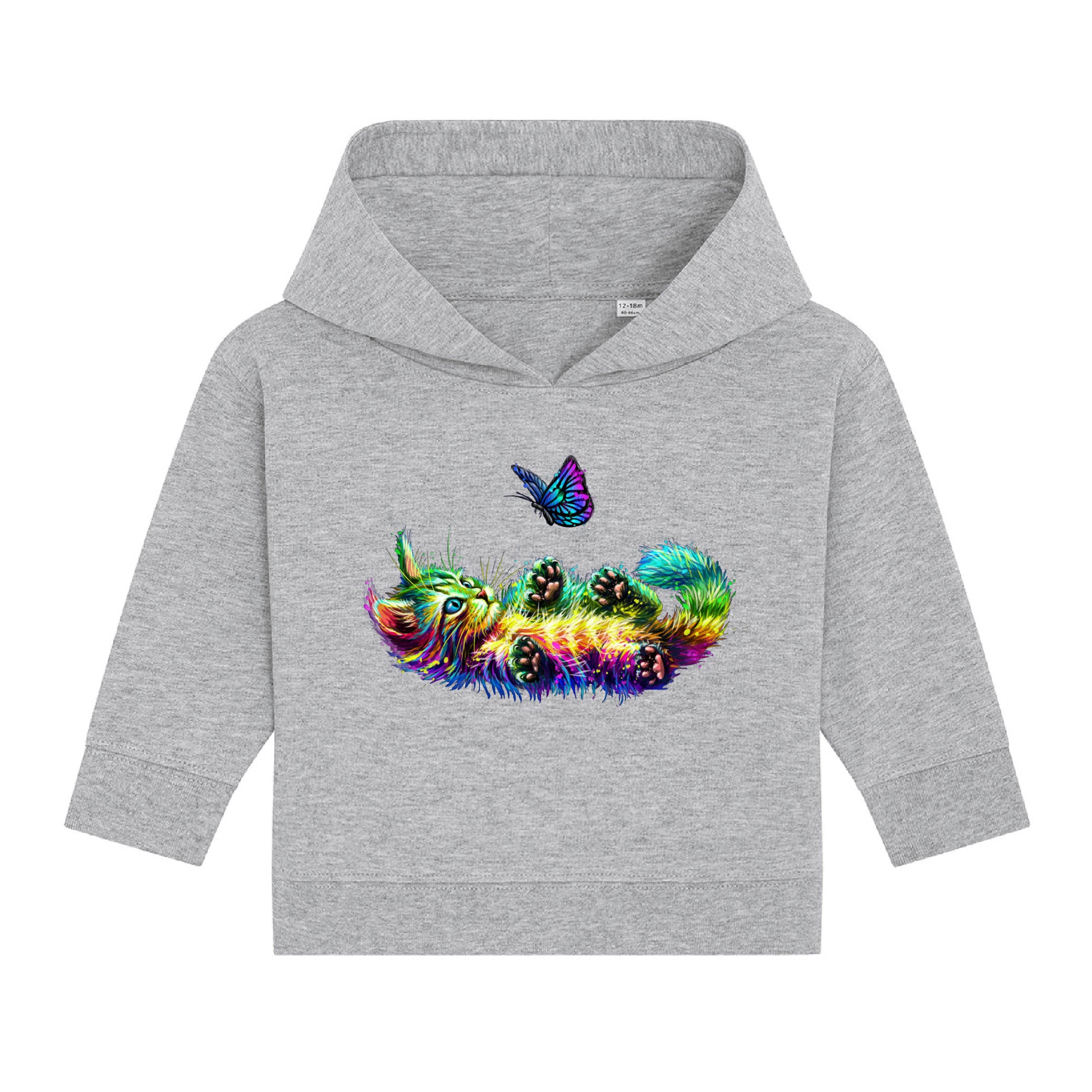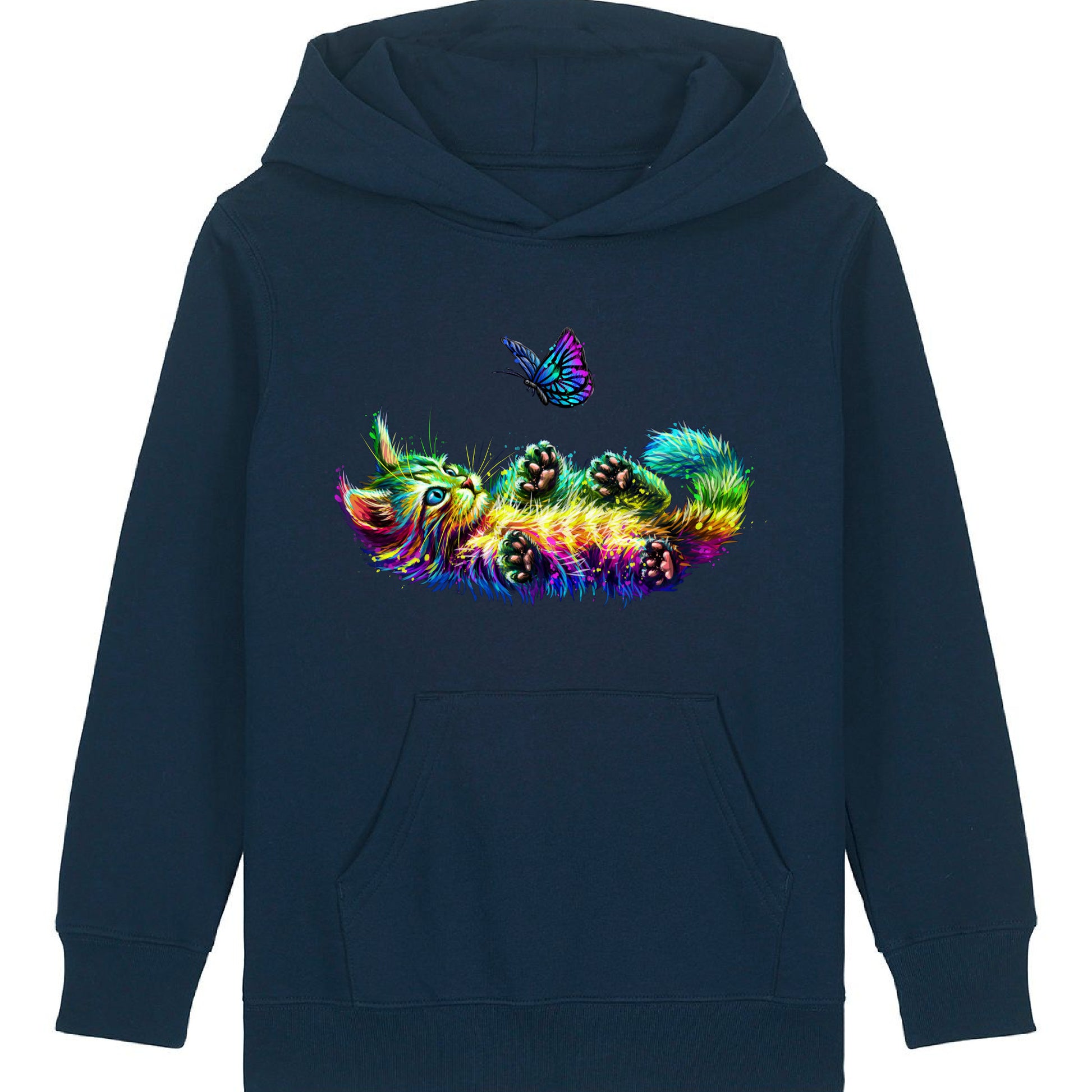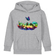 Indulge in the whimsical world of Bella & Bow, the colourful cat and butterfly companions as they frolic together bringing joy and enchantment to your everyday life. With Bella & Bow's playful cat and butterfly design, this hoodie brings a touch of magic to your child's wardrobe. Let your little one's imagination soar with joy and enchantment every day.