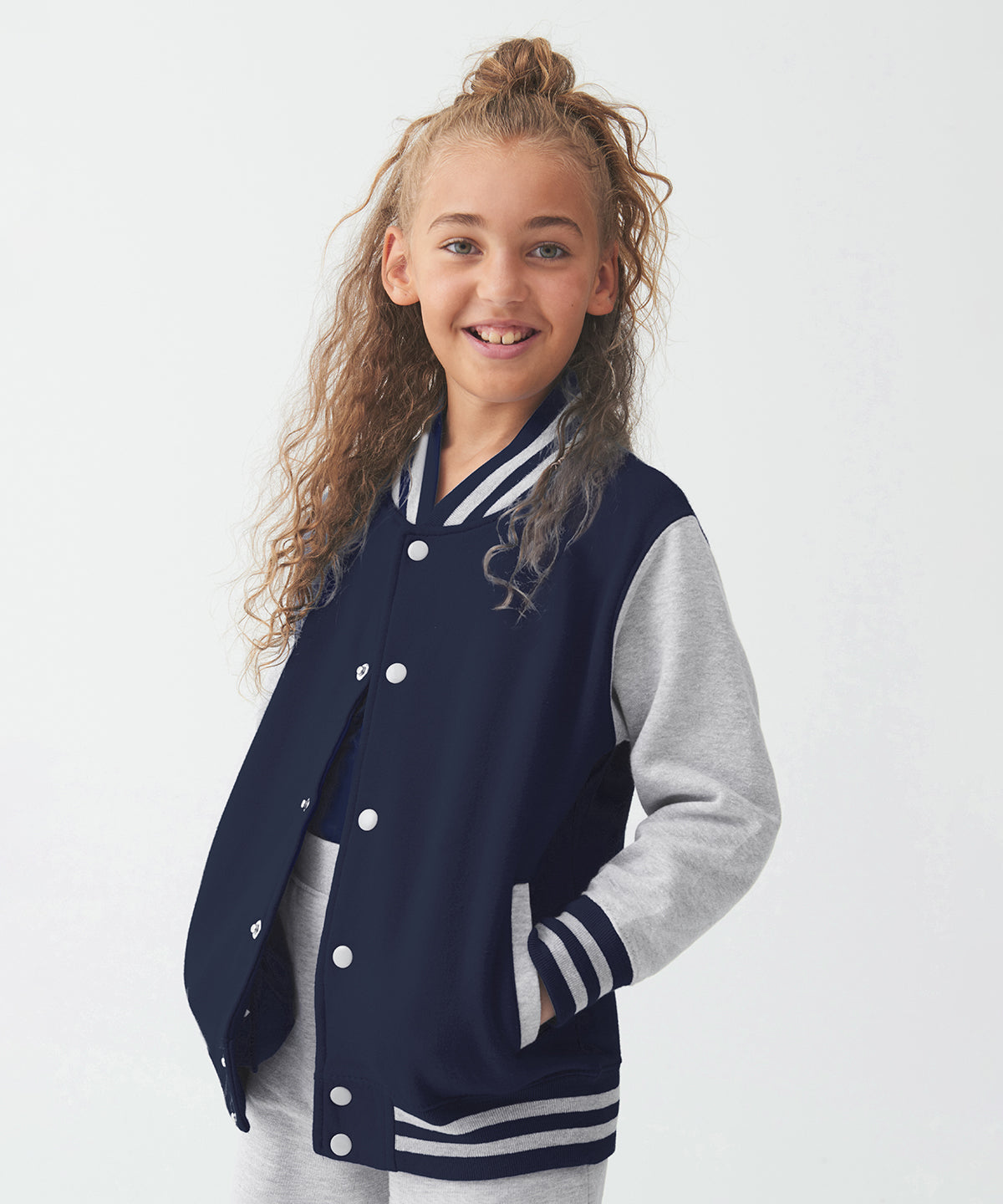 This Varsity Jacket is more than a sporty classic - it's a timeless statement of style perfect for sports and leisure. It features a classic fit with contrast sleeves and front popper fastening ideal for active kids and offers the added bonus of custom personalisation. Make your child stand out with this unique and stylish jacket!