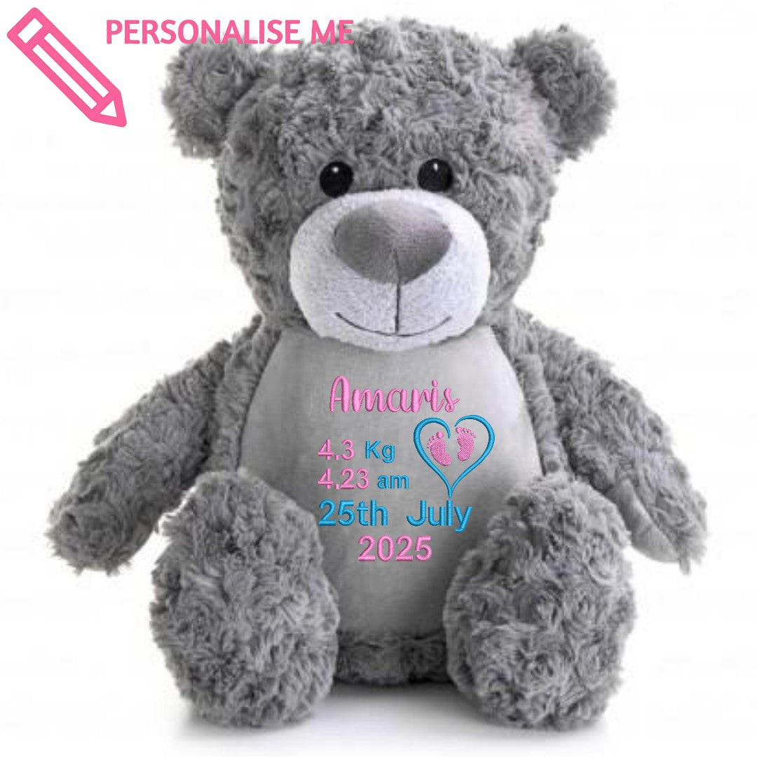 Welcome your little bundle of joy with the Embroidered Birth Teddy Bear, a cuddly friend that’s as sweet as can be! This soft teddy bear is perfect for snuggles and features delicate embroidery that can be personalised with your baby’s special birth details—making it a truly one-of-a-kind keepsake. Crafted with love and care, it’s not just a toy but a comforting companion for your little one and a treasured memento for the whole family. Perfect for any nursery, ready to be hugged, loved, and cherished for years to come. Whether it’s playtime or nap time, this teddy bear brings warmth, smiles, and a sprinkle of magic to every moment.