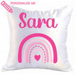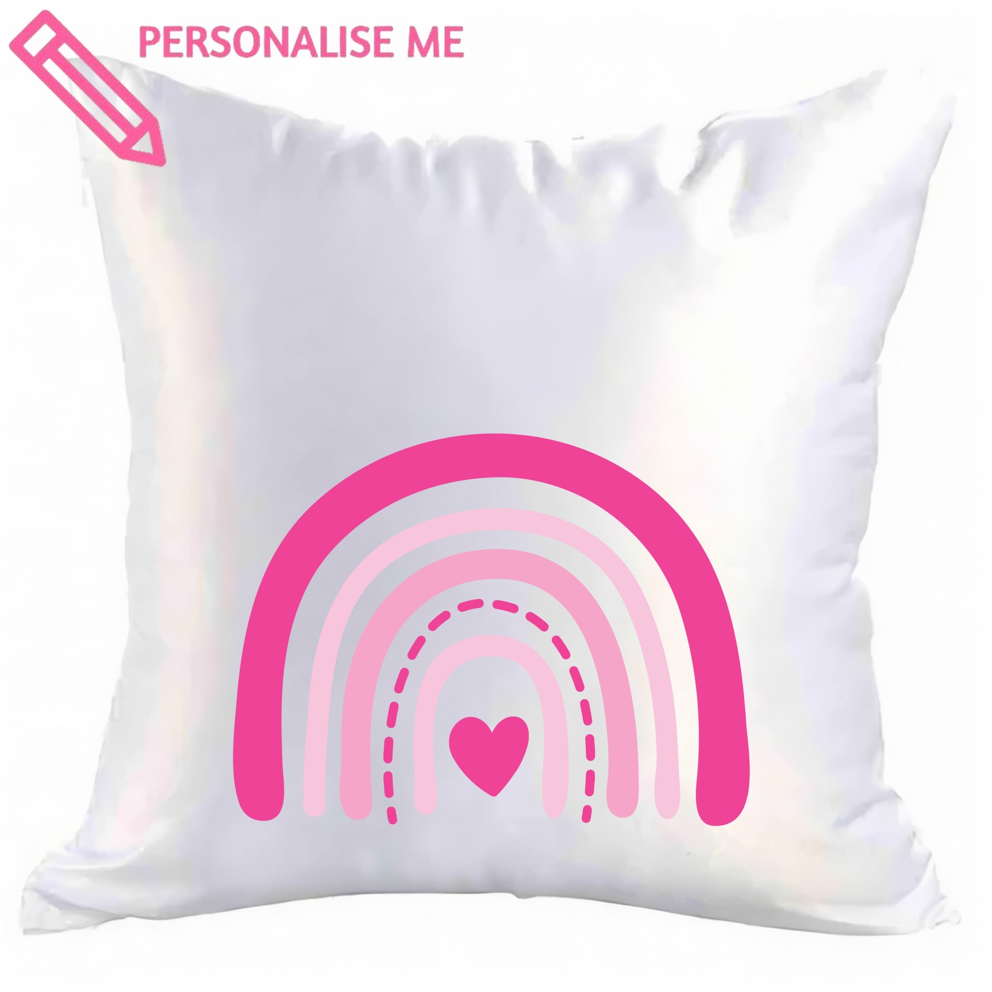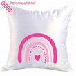 Elevate your home decor and gift giving experience with our exquisite Personalised Satin Rainbow Hearts Pillow. The refined satin material in a delicate off white shade adds a luxurious touch, complemented by the sturdy zip closure for lasting use.