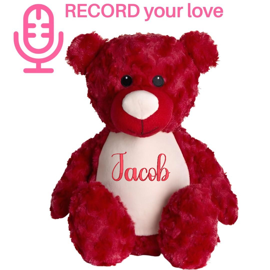 The Personalised Voice Recorder Teddy Bear in red is more than just a cuddly toy—it's a meaningful keepsake that captures your voice and your heart. Customise this adorable bear with a name and a special recorded message, creating a unique gift that brings comfort and joy to children and loved ones alike. Whether for birthdays, special occasions, or just because, this teddy offers a lasting connection that brightens any day. Give a gift that speaks from the heart and creates cherished memories with every hug.